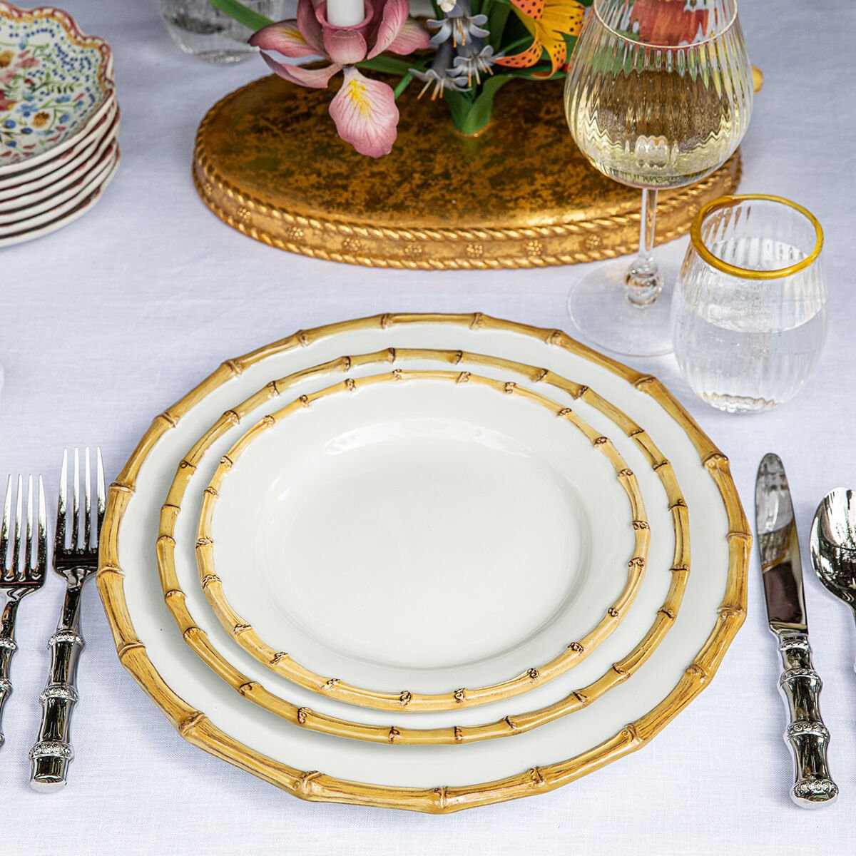 Bambu Koleksiyonumuzdan – Tatlı sofistike bu şık tabakla ön plana çıkıyor. Rustik şekilde rafine bambu süslemeler, taze ricotta ile doldurulmuş ve bal ile serdirilmiş olgun incirlerden günlük tatlılara ve küçük lokmalara kadar her şeyle mükemmel uyum sağlayan doğal bir zarafet katıyor. Hem rustik, hem cilalı hem de zahmetsizce şık olan bu eser, her mutfağa mükemmel uyum sağlar.